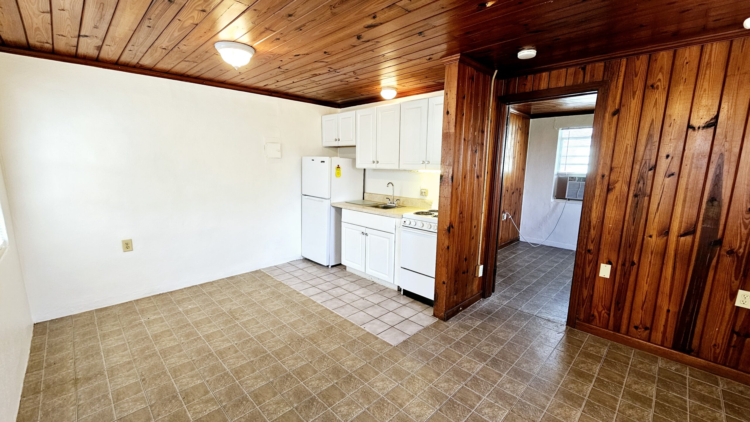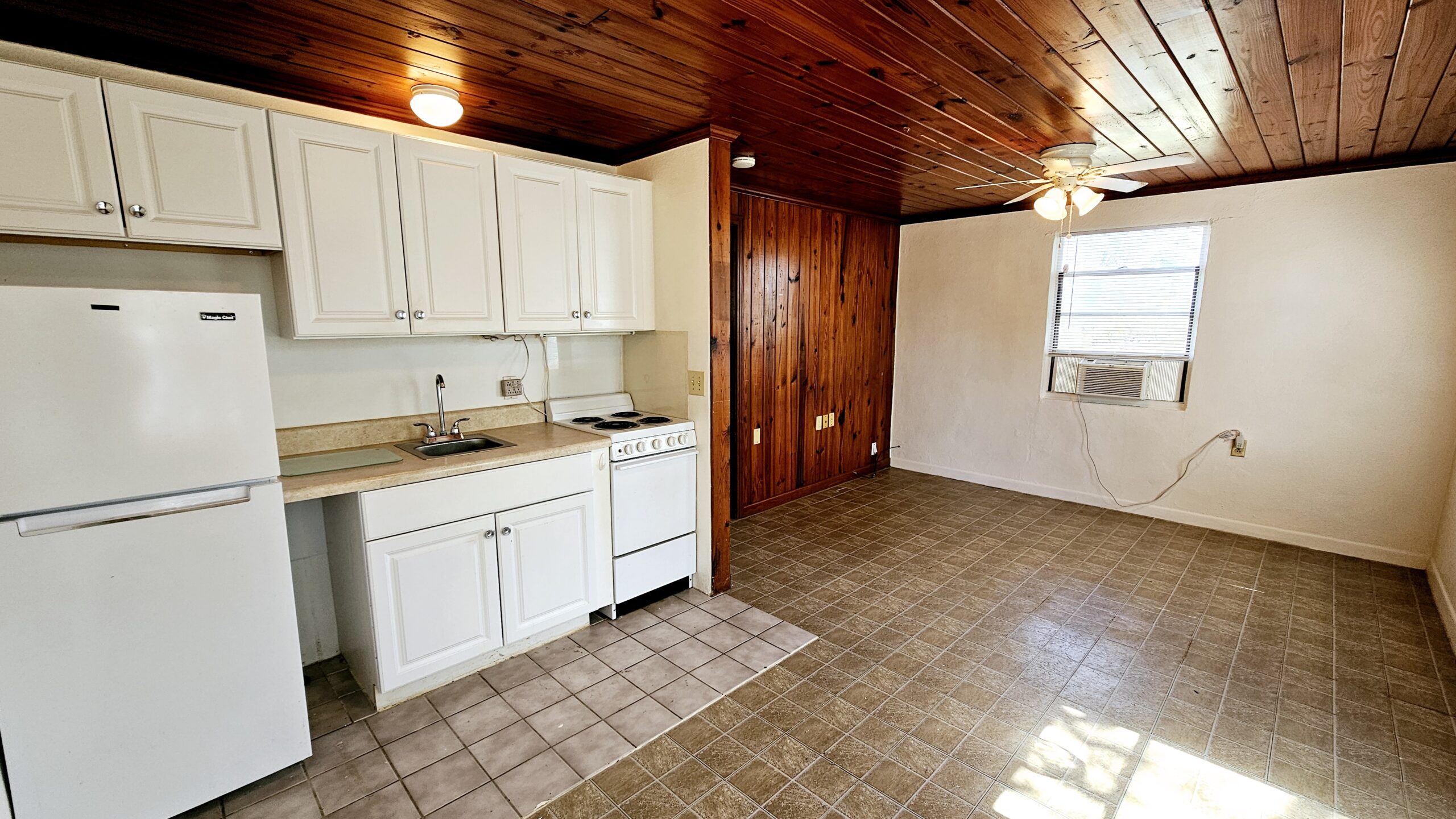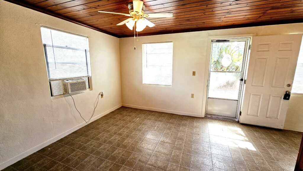 This cozy 1 bedroom, 1 bath apartment offers the perfect combination of comfort and convenience, located just a short walk to downtown Dearborn St to local shops, farmers market, dining, art shows, car shows and picturesque sunset views. Experience the charm of living in Englewood's historic downtown district with easy access to everything you need! It features laminate flooring throughout, teak wood ceilings and walls, walk in shower, two window A/C units for comfort. Plus, enjoy the added convenience of a washer in the utility room. Perfect size for one. PARKING FOR ONE VEHICLE ONLY.